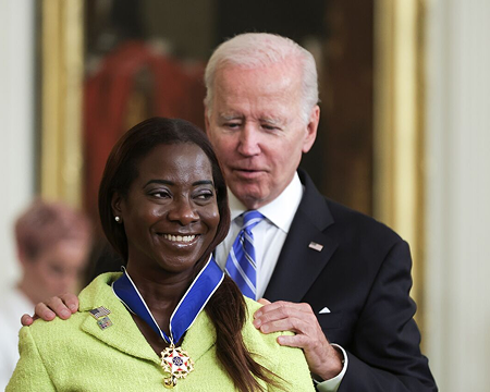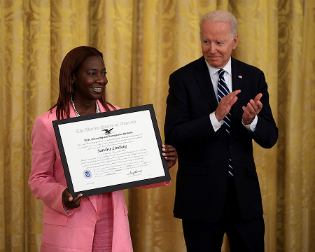 President Joe Biden recognizes Sandra Lindsay as an "Outstanding American by Choice"